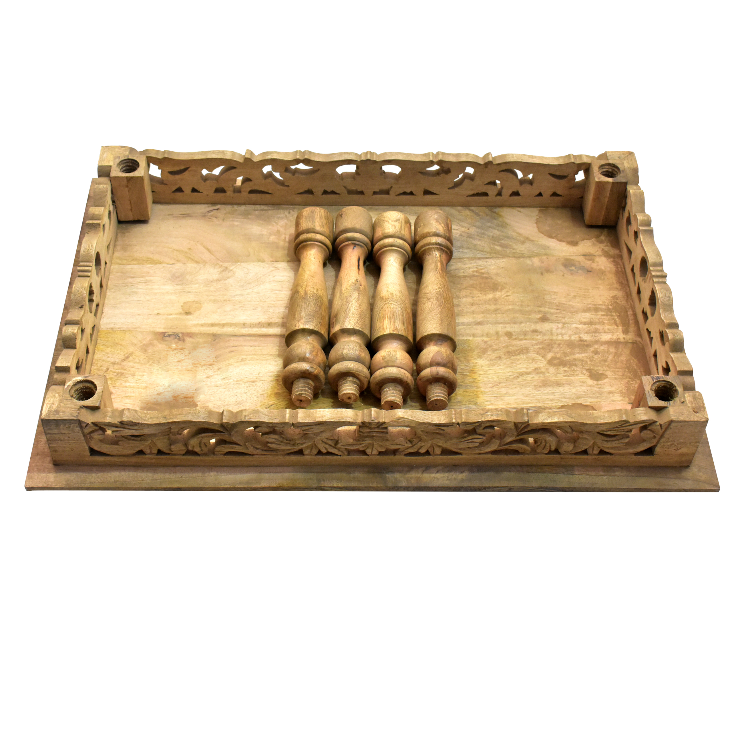 • Features: Detachable Carved Legs, Hand-Carved Floral Design