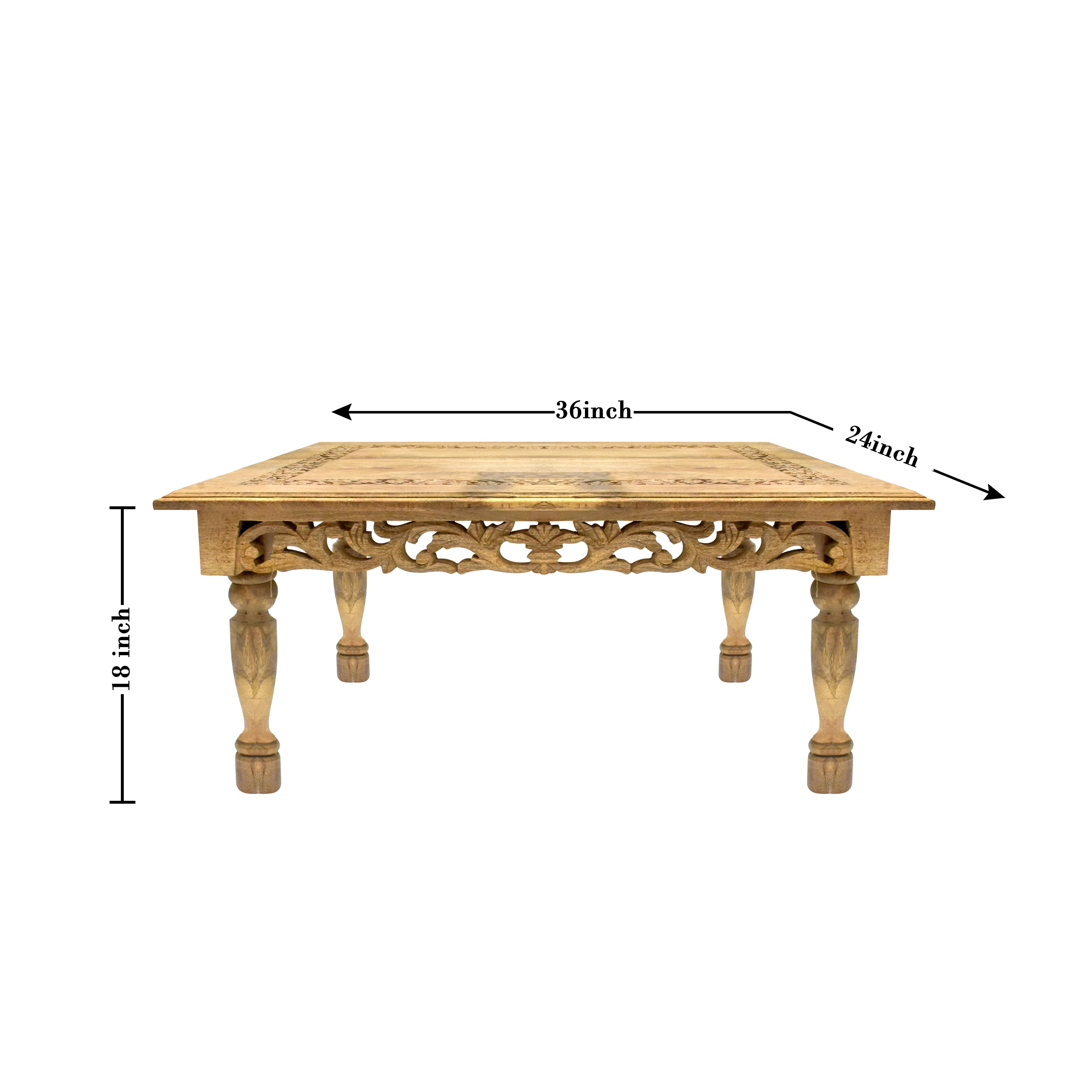 Transform your living room into a space of elegance, warmth, and sophistication with this exquisite handcrafted wooden coffee table. Made from premium quality solid wood and adorned with beautiful hand carvings, this table is more than just a piece of furniture – it is a statement of style, tradition, and functionality.