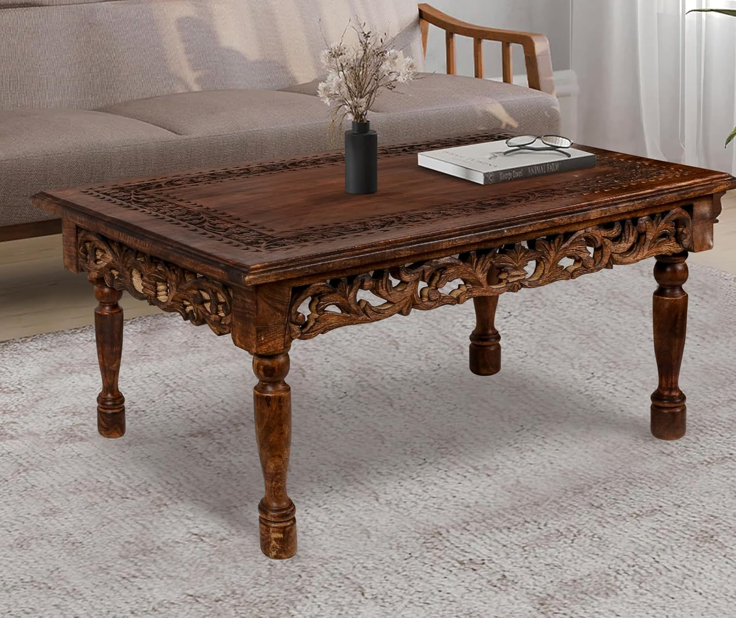 Our Handmade Sheesham Wood Center Table blends traditional Indian artistry with modern elegance, designed to seamlessly elevate any living room, farmhouse, bedroom, or hallway.